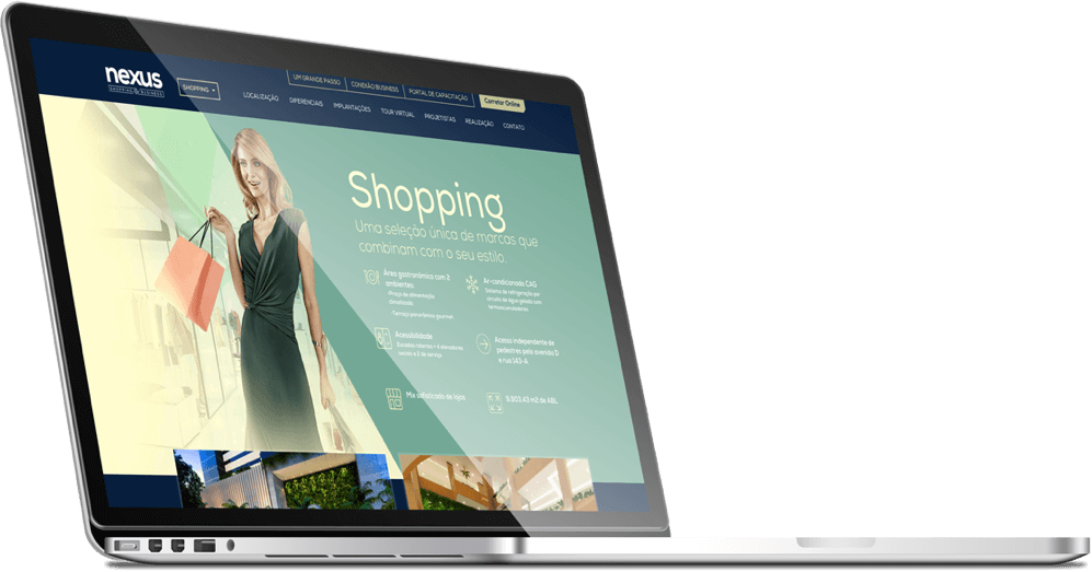 O empreendimento Nexus Shopping & Business é constituido de 5 complexos, sendo Shopping, Centro de Convenções, Hotel, Office e Corporate. O projeto foi norteado por essa característica, desde a etapa de cadastro até o lançamento do Portal.
