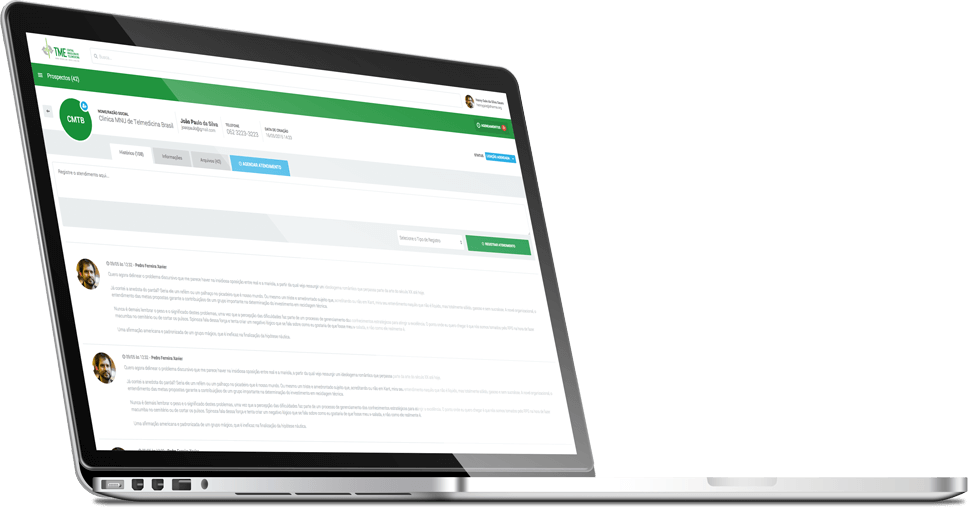 Através do formulário de cadastro, o Prospecto informa as informações necessárias para a contratação do serviço da TME - Telemedicina Cardiológica, após isso o atendente recebe esta informações no painel, e dá procedimento no processo administrativo.